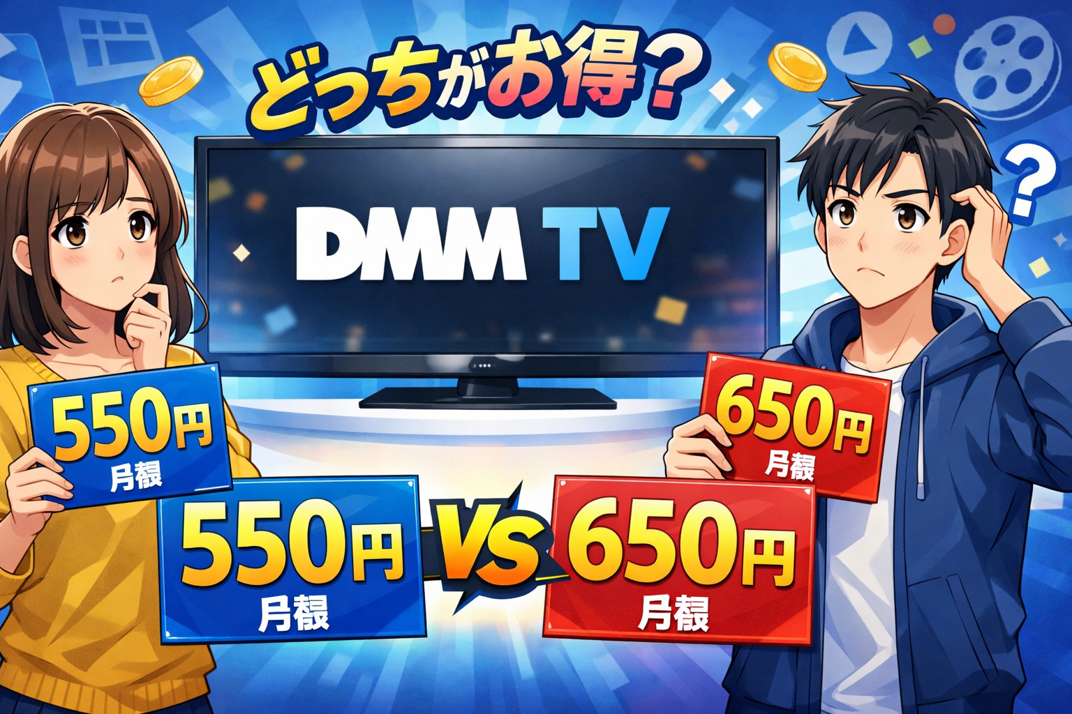 DMM TVを調べていると、「月額550円」と「月額650円」という2つの料金表記を見かけて戸惑う人は少なくありません。